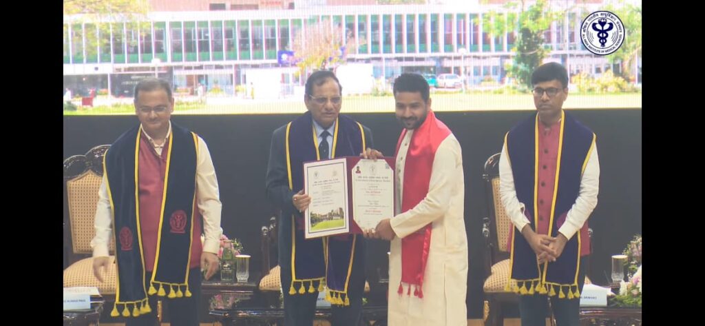 मेरठ | खरखौदा निवासी डॉ. सागर त्यागी, सुपुत्र अरविंद त्यागी (पूर्व सभासद, खरखौदा), ने क्षेत्र का नाम रोशन करते हुए अखिल भारतीय आयुर्विज्ञान संस्थान (AIIMS), नई दिल्ली से पीएचडी की उपाधि प्राप्त की है। यह उपाधि उन्हें एम्स के 50वें दीक्षांत समारोह में प्रदान की गई, जो मानेकशॉ ऑडिटोरियम, धौला कुआँ, नई दिल्ली में आयोजित हुआ।