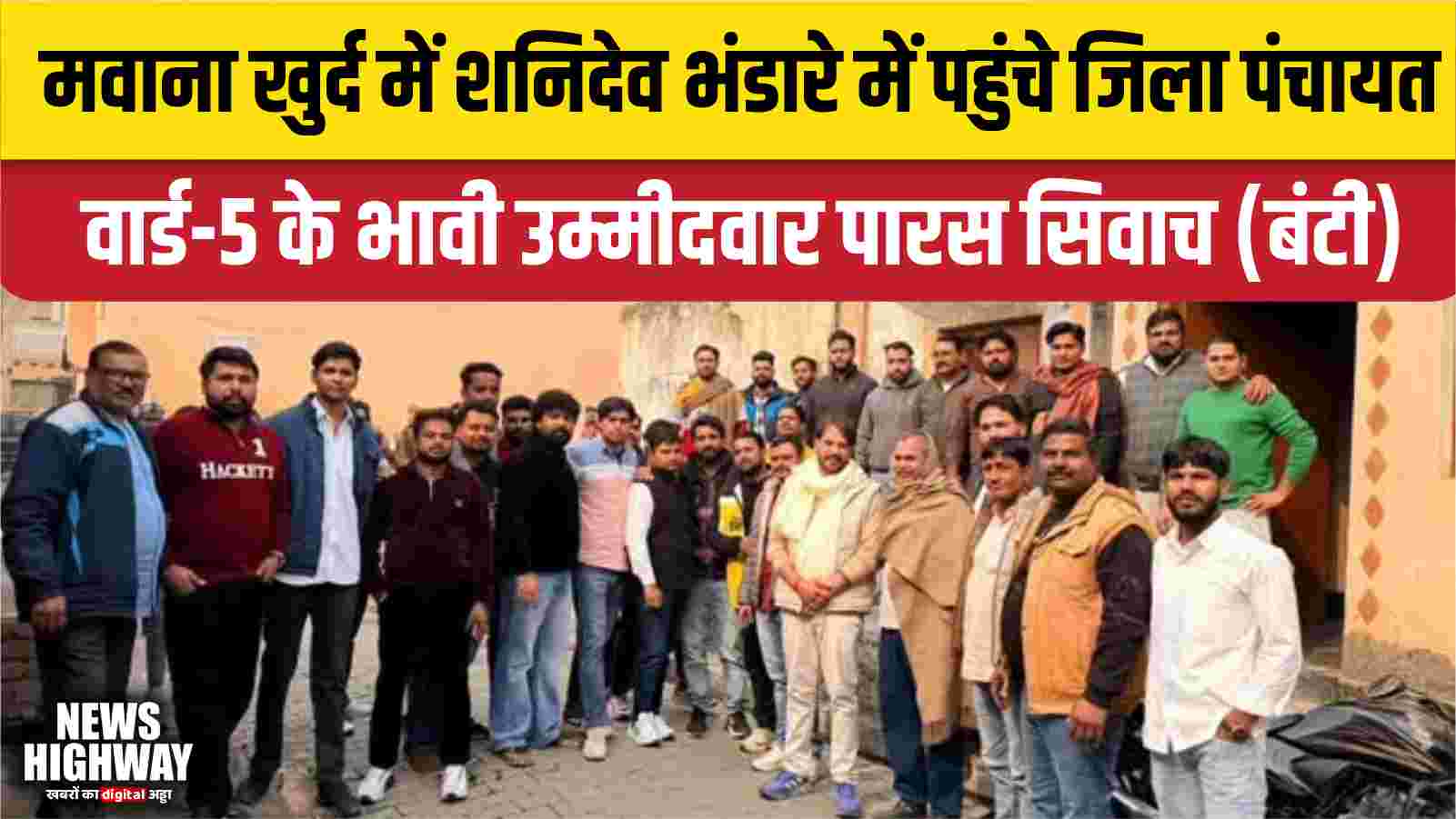 मवाना खुर्द में शनिदेव मंदिर की छठी वर्षगांठ पर भंडारे का आयोजन हुआ। कार्यक्रम में जिला पंचायत वार्ड 5 के भावी उम्मीदवार पारस सिवाच (बंटी) पहुंचे, जहां ग्रामीणों ने उनका स्वागत किया और उन्होंने आशीर्वाद लिया।